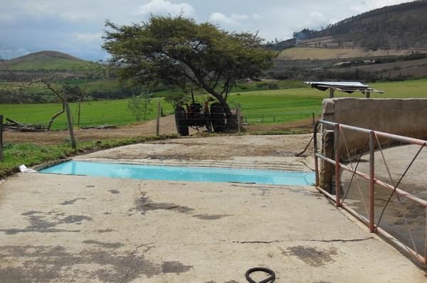 Debemos calcular 1 litro de agua con el producto disuelto por vaca que pasa por el pediluvio; por ejemplo si tengo 250 vacas en ordeño, el mismo deberá tener una capacidad de 250 litros. Para calcular el volumen de líquido que contiene el pediluvio deberemos hacer una simple cuenta; largo x alto (solo 10 cm a llenar) x ancho del pediluvio.